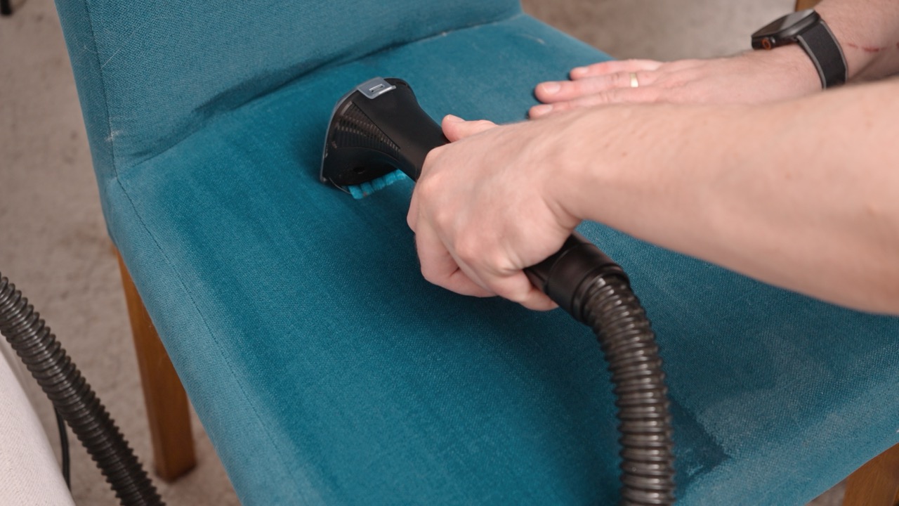 W pudełku z punktowym odkurzaczem piorącym Tefal Clean It znajdziemy również bogaty zestaw akcesoriów, w tym głowice (w tym szeroka, węższa i bardzo wąska do auta, z dodatkowym włosiem itd). Możemy czyścić zarówno dywany, jak i tapicerki, a także wnętrze samochodu i wiele innych powierzchni. Odkurzacz ma też funkcję samoczyszczenia węża po podłączeniu odpowiedniego akcesorium.