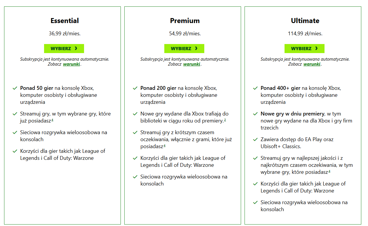 - Xbox Game Pass Premium (wcześniej Standard) – cena pozostaje bez zmian i wynosi 54,99 zł miesięcznie.