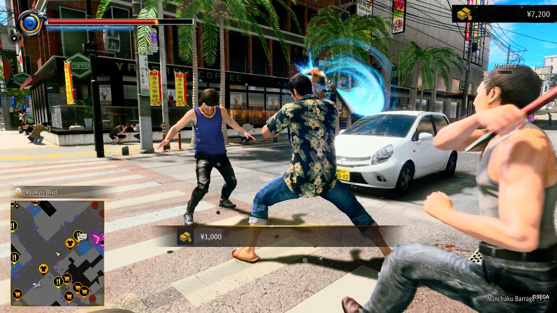 Możliwość przeniesienia bitki z ulicy do marketu to tylko jedna z nowości. Drugą jest kompletnie nowy styl walki, wykorzystujący przedmioty związane z kulturą Okinawy – tonfę, nunczako czy choćby żeglarskie wiosło. Nowy styl świetnie sprawdza się podczas walk z grupami słabszych wrogów. Do tego dzięki małej tarczy w końcu możemy stale chronić się przed pociskami z broni palnej.