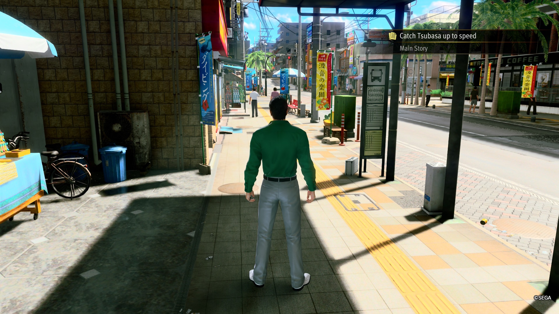 Główny bohater o imieniu Kiryu to członek yakuzy w stanie spoczynku. Odciął się od gangsterskiego świata, wracając tam, gdzie się wychował – do sierocińca na Okinawie. Jako dorosły mężczyzna, Kiryu przejął ośrodek i samodzielnie opiekuje się sierotami. Były gangster zajmuje się dziećmi z łapiącą za serce troską. Gracz od razu utożsamia się z bohaterem i jego podopiecznymi. Razem tworzą wyjątkową rodzinę, ciesząc się prostym, niemal sielankowym życiem.